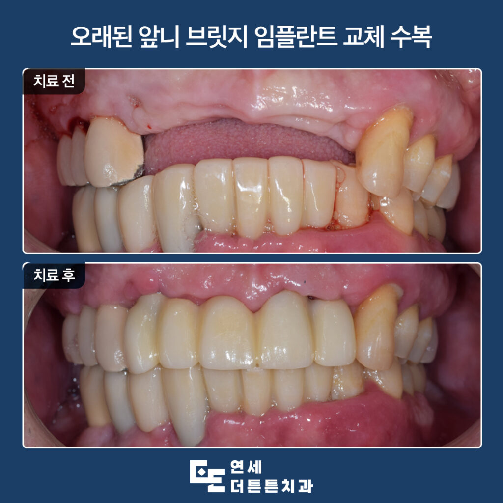 도봉구치과 오래된 앞니 브릿지 임플란트 교체 수복