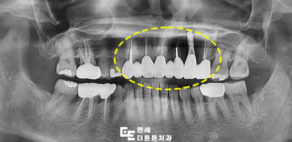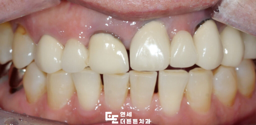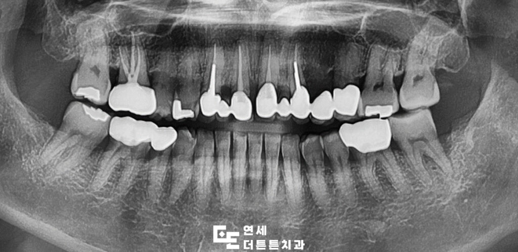 이에 기존 보철물을 모두 제거한 뒤 도봉동치과 앞니치료 계획에 따라 신경치료가 필요한 치아는 선행 치료를 진행하고 이후 재수복을 결정하게 되었습니다.
