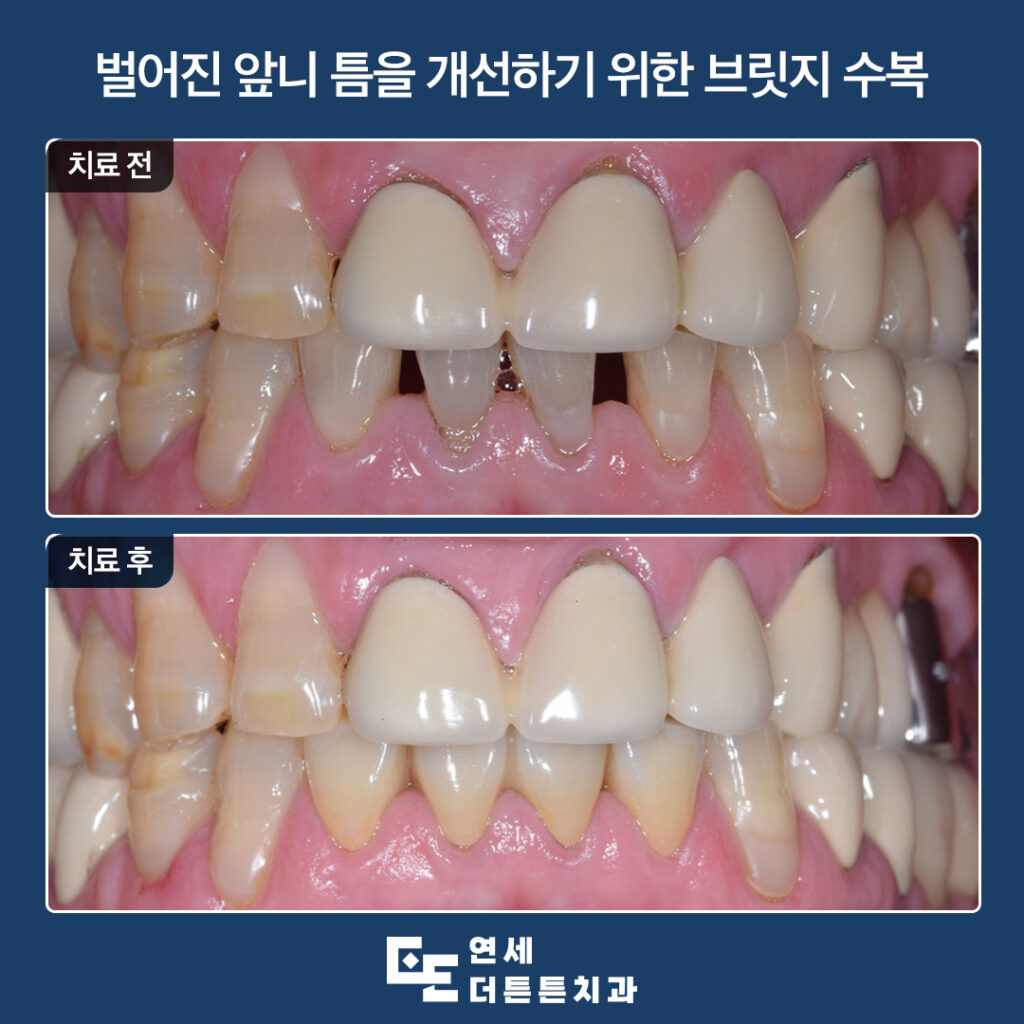 도봉동치과 벌어진 앞니 틈을 개선하기 위한 브릿지 수복