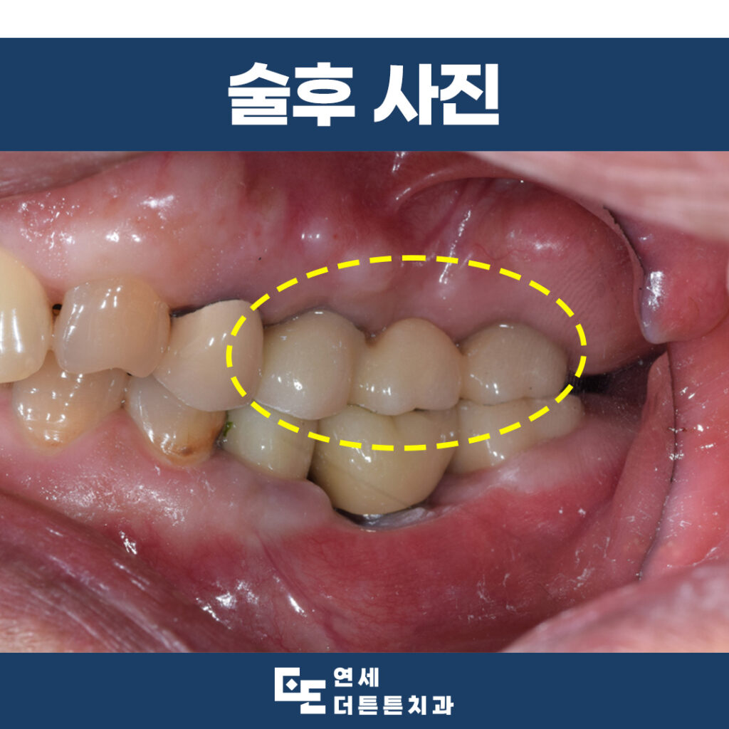 인공치근을 턱뼈에 심고 그 위에 보철물을 연결해