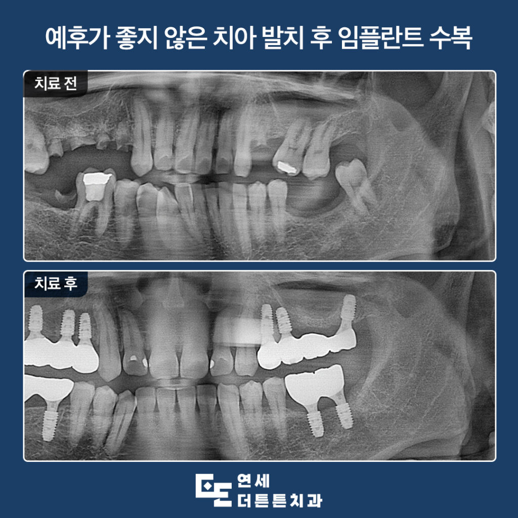 방학역치과 예후가 좋지 않은 치아 발치 후 임플란트 수복방학역치과